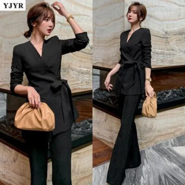 여성 정장 결혼식 면접 수트 오피스룩 가을블랙 브이넥 정장이 날씬해 보이는 분위기 나팔바