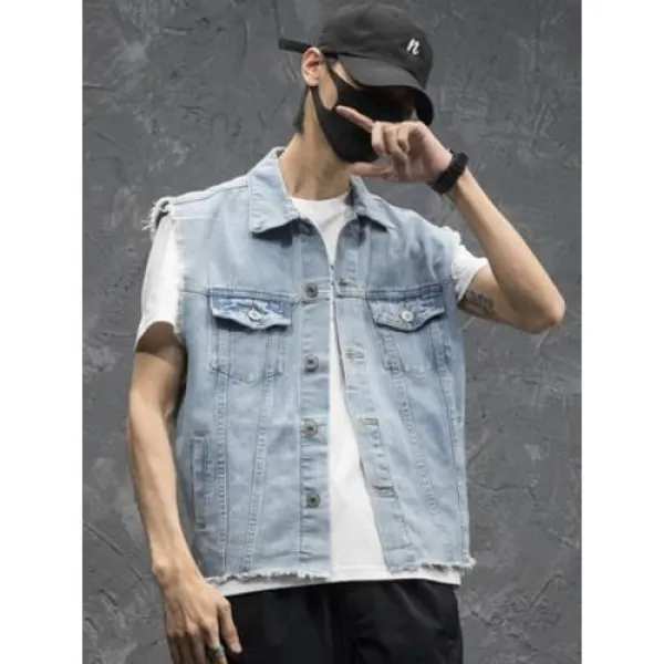 남자 청조끼 데님베스트 슬림핏 루즈핏 빈티지 패치 흑청 라이더 워싱 빈티지 퍼 트리밍 데님 베스트 남루