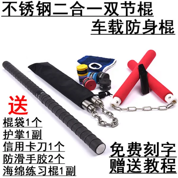 쌍절곤배우기 곤장 무술봉스폰지 스테인리스 2단봉 2합1 차량용 호신봉 실전조각, 350g 꼬임 무늬 용봉봉지 손 보호대