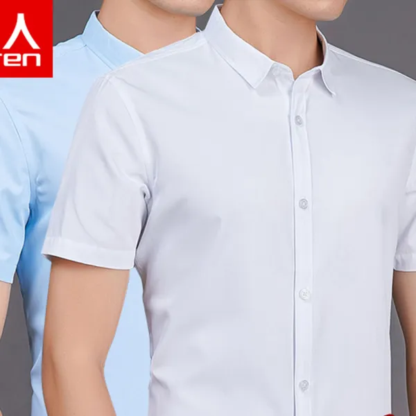 남성 정장 와이셔츠 남극 여름 비즈니스 드레스 셔츠 반팔 슬림 피트 캐주얼 트