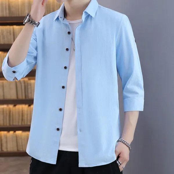 남자 남방 여름 반팔 박시핏 면 3/4 소매 셔츠 남성 5 점 브랜드 2021 캐