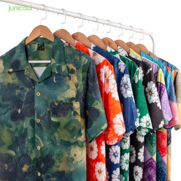 남성 프린트 복고풍 셔츠 커플 포트 스타일 반팔 유화 전체 인쇄 얇은