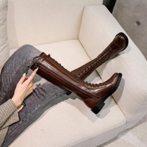 롱부츠흘러내림 고정 종아리넓은 윙팁가을겨울롱부츠흘러내림 종아리넓은통굽브라운무릎기사화여자네