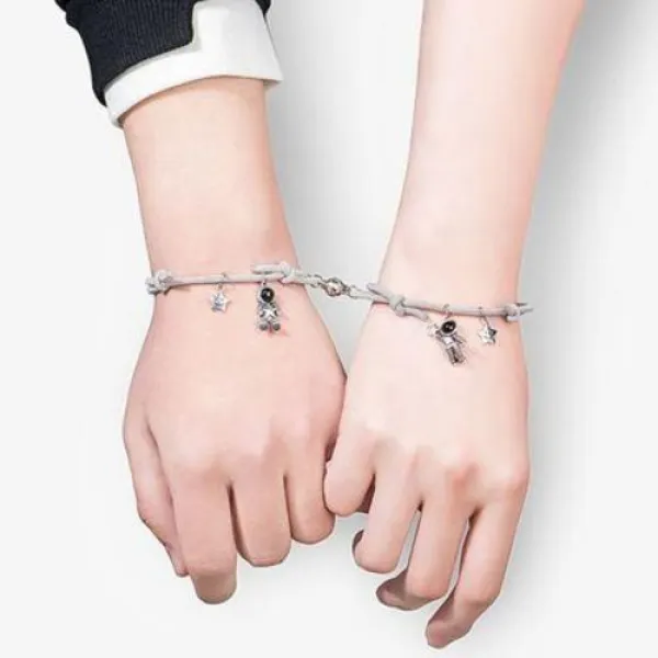 남자 여자 명품 천연 가죽 팔찌 커플 선물 클래식 소품은 철석 작은 고무줄 쌍으로 서로 흡입 조절 가능