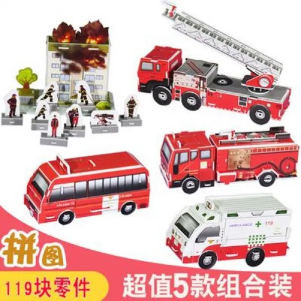 장난감집 종이집 대형 감성 diy 어린이집 소방수제작 3d 입체 퍼즐 구름사다리차, 01 소방차 조합