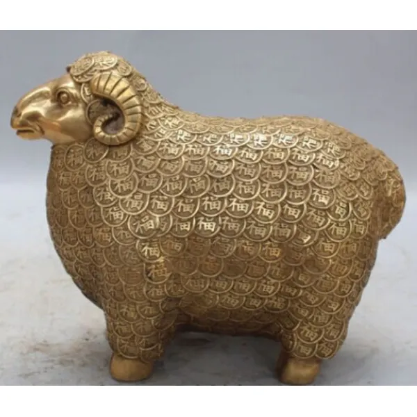 RHS0047 10 중국어 청동 FengShui 길조 동물 100푸 양 염소 조디악 동상