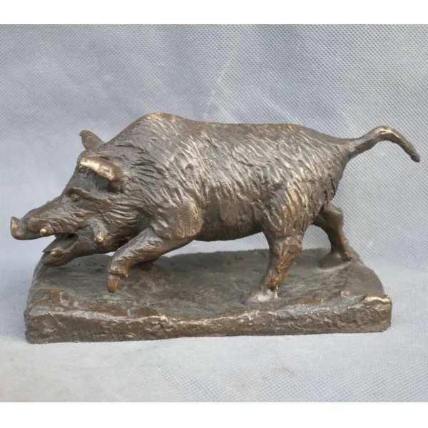 Bi002054 8 청동 동물 공격적인 큰 송곳니 이빨 강한 멧돼지 조각상