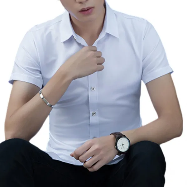 패션 짧은 소매 순수 컬러 대형 남성 셔츠 짧은 소매 슬림 맞는 공식적인 남성의 흰색 셔츠 비즈니스 남성 사회|Casual Shirts| 해외직구