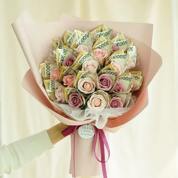 앨리플라워 돈꽃다발 20송이 돈다발꽃 용돈꽃다발 부모님선물 기념일 첫월급선물, 핑크믹스