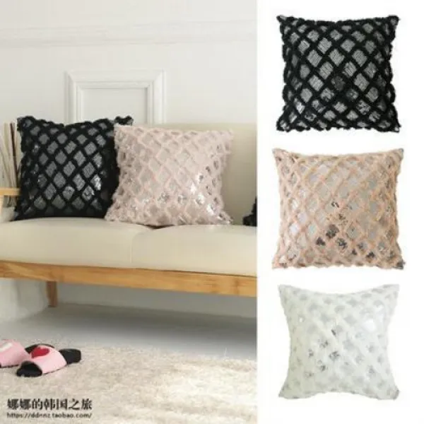 by 지미 정품 구매대행 내향적인 사장님 같은 마름모 체크 글리터 사각 쿠션 거실, 01 흰색, 01 45X45cm 단베개커버