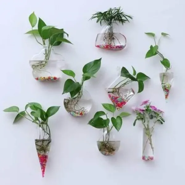 벽걸이 소 공중 유리 원형 녹라벽 걸개유리병 어항 걸개수배꽃병 벽화꽃걸기거실벽에물꽃, 01 8콤비+컬러스톤+걸림