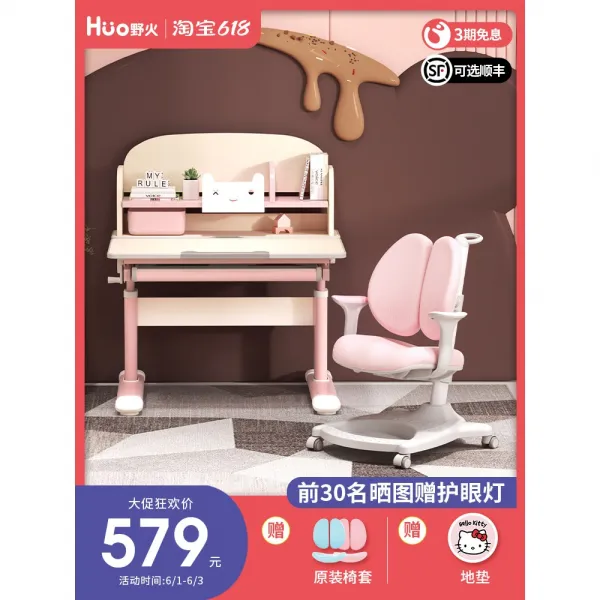 오즈의 마법사 책상 들불 어린이 책상 가정용 과제물 어린이 책상 의자 학생 책상 의자 세트 승강장 가능, 01 러버베어 80cm 싱글 테이블 파우더