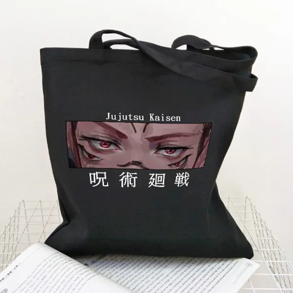 일본 애니메이션 Jujutsu Kaisen 캔버스 가방 캐주얼 하라주쿠 여성 가방 대용량 빈티지 구매자 가방 펑크 여성 숄더 백|Shoulder Bags|
