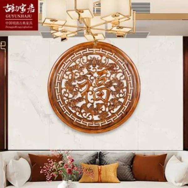 나무 조각 공예 천연 우드 인테리어 장식품 동양목조 걸이 장목조각공예품 중식현관 원형 복자장식 소파 벽걸이, 03 재물을 모집하여 80x80을 수입하다.