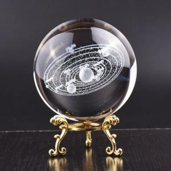 스노우볼 워터볼 수정구 크리스털 고급장식소품 태양계 9대 행성 8대 천체 3D 내조 환적구 선물 홈, 01 6cm 볼+골드 받침대 선물세트