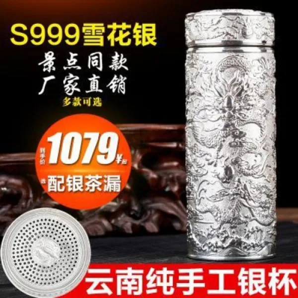 고급 순은 텀블러 보온병 레트로 실버컵 99.9% 스노우실버 속담보온컵 구룡 내외전은잔선, 16 鎏금구룡배송은차누락