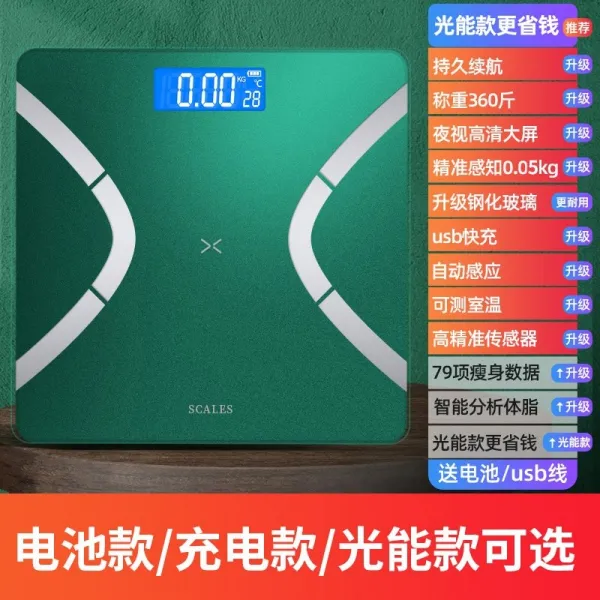 스마트 정확한 몸무게 전자 미니 체지방 가정용 체중계 추천 무게 저울 홈 작은 고정밀 인체 무게 내구성 소녀 규모, 짙은 녹색, 배터리