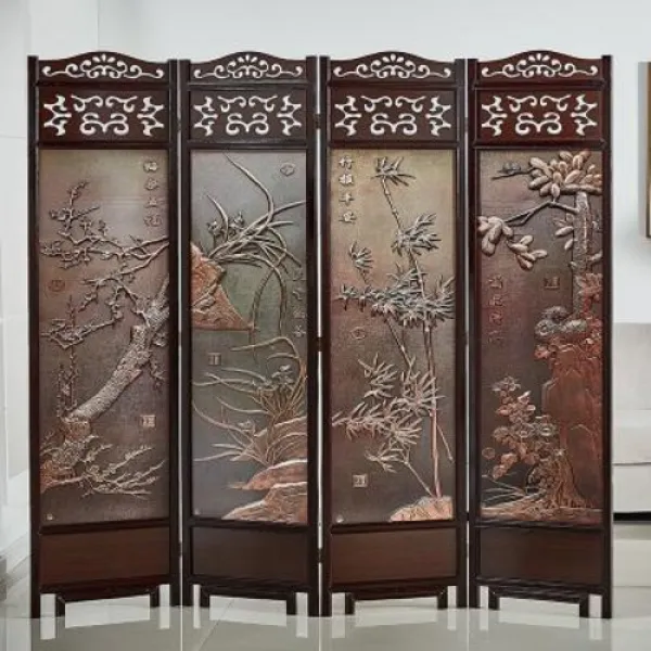 낮은 현관 원목 중국식 병풍 접이식 호텔 다방 칸막이 거실 디어 양면 빈티지, 19 말 네 짝이 성공하다.