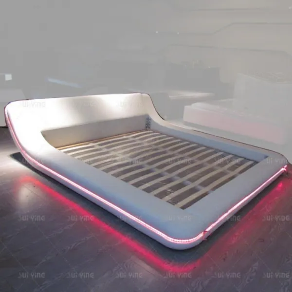 가죽 다기능 침대 프레임 직사각형 침대 북유럽 camas 궁극적 인 침대 변경 LED 조명 8050, 매트리스없는 침대, 협력사, 왕