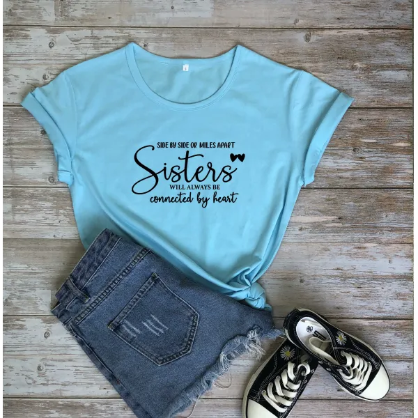 나란히 나란히 또는 마일 떨어져 자매는 항상 마음에 의해 연결됩니다 가족 어머니 일 선물 순수한면 t 셔츠 슬로건 티 top|T