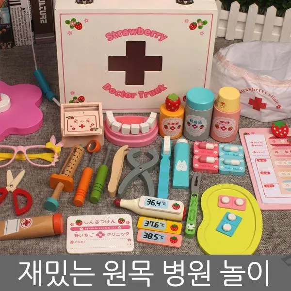 재밌는 원목 병원놀이 의사놀이 치과놀이세트 장난감, 08 병원놀이세트 F타입(+링거+의사가운)33pcs