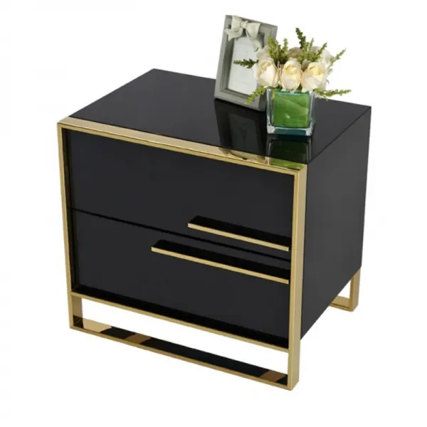 라이트 럭셔리 현대 머리맡 테이블 북쪽 스타일 바람 스테인레스 스틸 하드웨어 침실 협탁, 검은 색