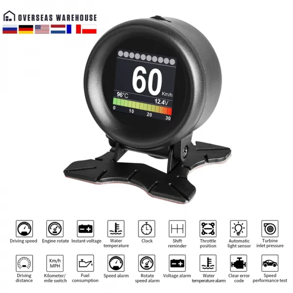 자동차 디스플레이 계기 Autool x60 hud 헤드 업 obd 디지털 미터 알람 속도 수온 디지털 오일 온도 게이지 압력 게이지, 협동사