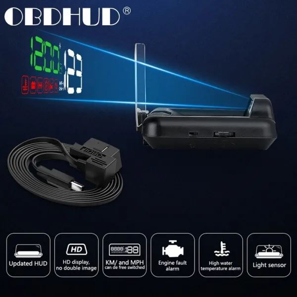 자동차 디스플레이 계기 WiiYii 미러 C500 HUD 헤드 업 속도 프로젝터 보안 알람 수온 과속 RPM 전압 알람 시스템 자동, 하얀색, 협동사