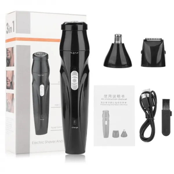 3 in 1 USB 충전식 코 귀 헤어 트리머 전기 수염 구레나룻 겨드랑이 헤어 클리퍼 면도기 면도기 리무버, 단일상품, 단일상품