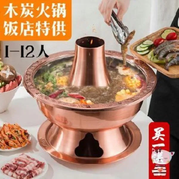 신선로 전골냄비 샤브샤브 원앙 샤브샤브 숯불 가마솥 원형무점솥 심화보일러 초대형 국솥 식당 특대탄소, 03 36cm 적동[긴 화투를 얹어준다]