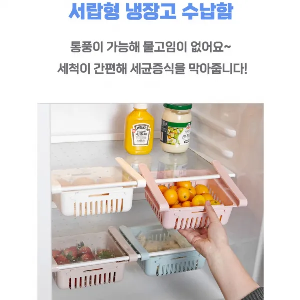 냉장고 공간활용하자~다용도 서랍형 냉장고 수납함 접착제없이 넣다뺏다 과일씻기 만능 선반정리함 용기 통풍보관 트레이, 화이트