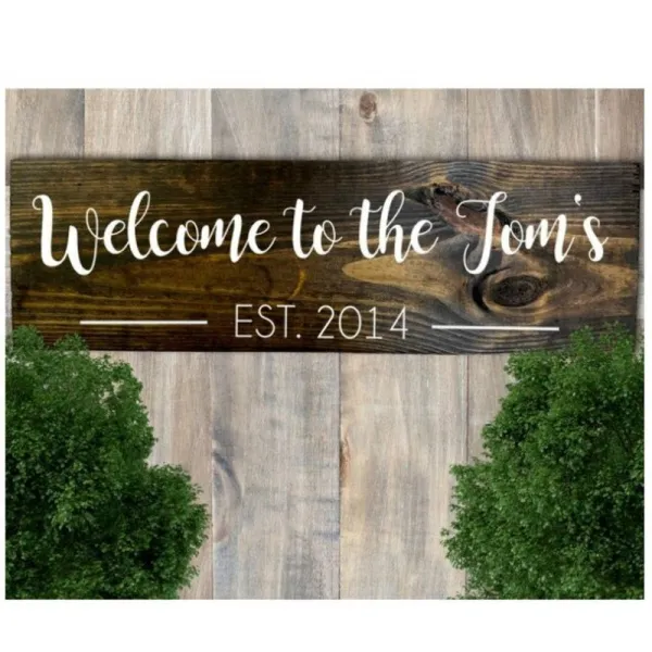 개인화 된 파티 환영 사인 사용자 정의 입구 표지판 나무 좌석 표지판 앞 베란다 장식용 소박한 나무 환영 사인, 45x60cm, 환영하다