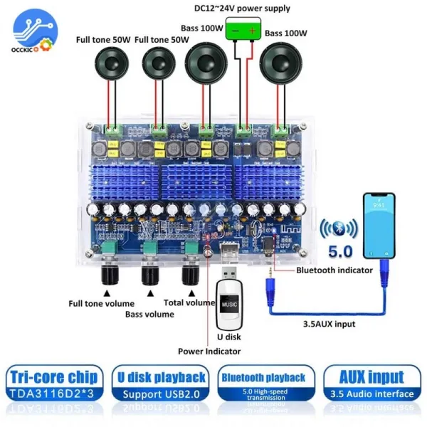 방송 음향 오디오 출력 증폭기 스피커xh-a310 블루투스 5.0 앰프 보드 tpa3116 50wx2 100wx2 4 채널 디지털 파워 앰프 듀얼 베이스 서브우퍼 홈 시어터
