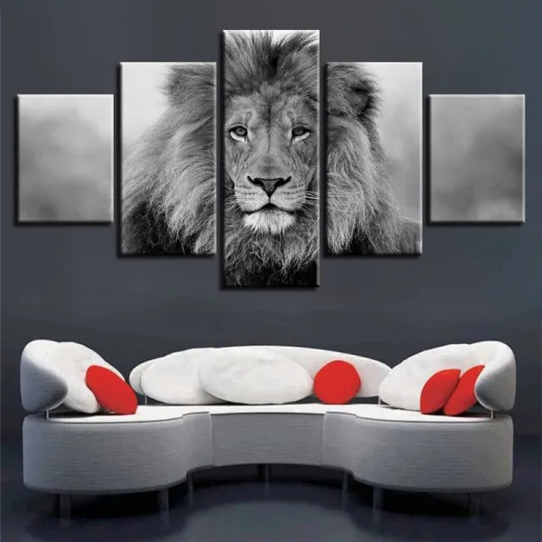 서양화 작품 선물 유명화가 캔버스 사진 모듈러 벽 아트 프레임워크 5 조각 동물 사자