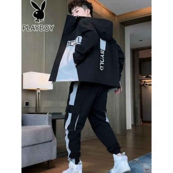 플레이보이 남성 자켓 세트 봄가을 2022년 신상 남성복 카고 오버사이즈 코트 세트