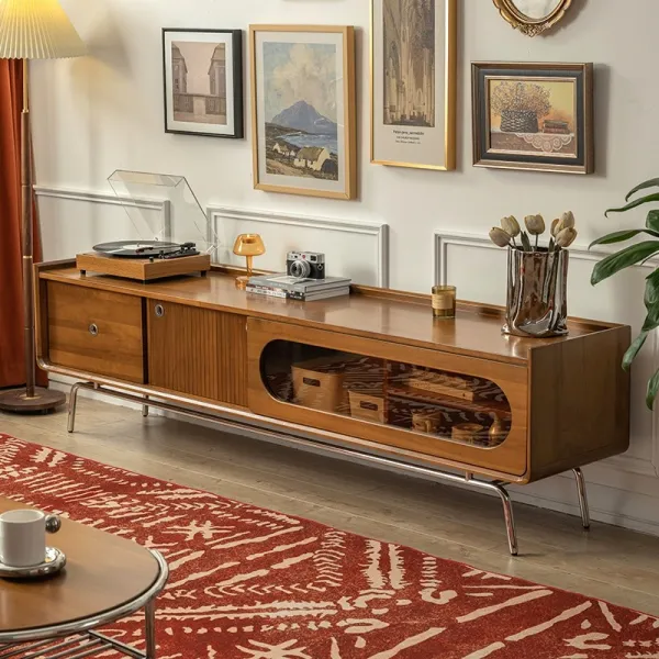 일본 원목낮은거실장 Momo 북유럽 단단한 나무 TV 캐비닛 레트로 TV수납장