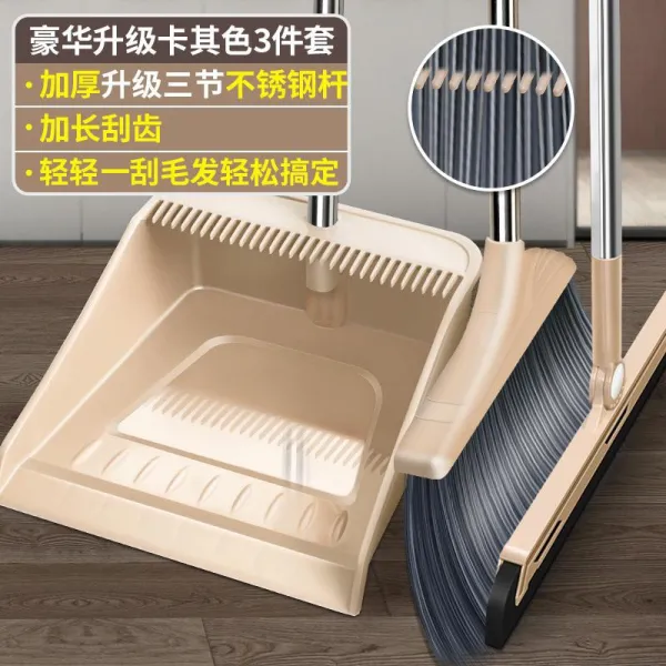 가정용빗자루 콤비네이션 논슬립 머리카락 바닥을쓸다 곁들이다 손잡이 치X급류 비닐 플라스틱 단, 봉 장구질 이 카키브라운 (