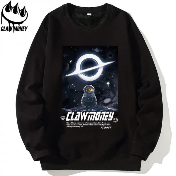 남성 맨투맨 긴팔옷 우주인 프린트 루즈핏 라운드 티