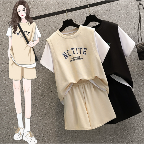 여성용 여성세트 상의+바지 투피스 캐주얼 빅사이즈 밴당바지 여름-DG41