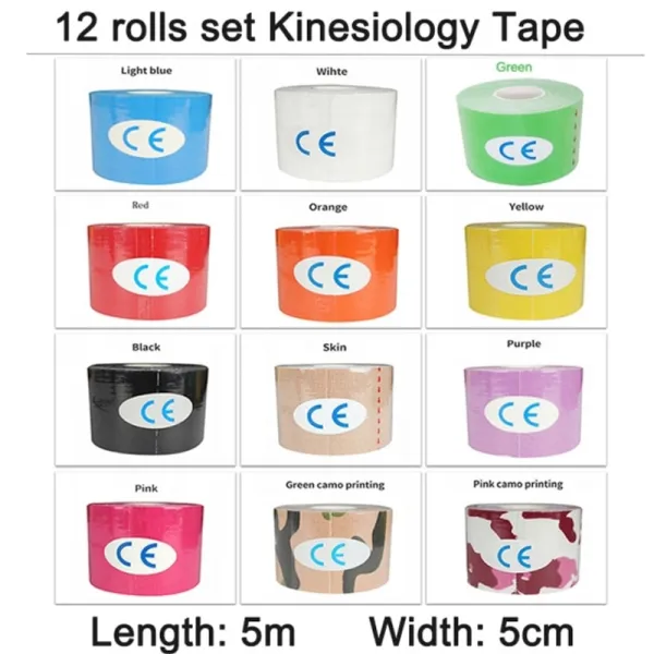 근육 테이프 세트 롤 자기 접착 성 탄력있는 붕대 통증 완화 운동학 줄자 의료 지원하다