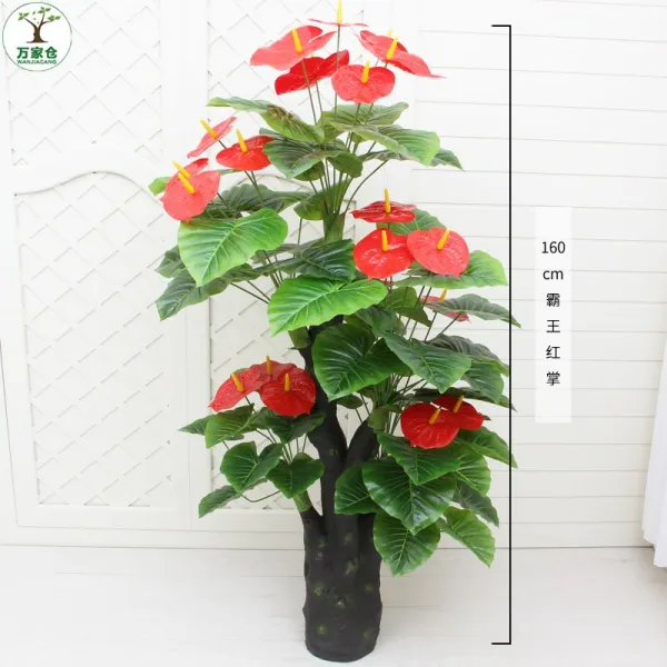 조화 모방 식물 분재 난초 거실 장식품 스탠드형 가화 모방리얼꽃 홈웨어 장식 두견새 실내 대모란, T19-1.6미터 붉은 손+바가지+