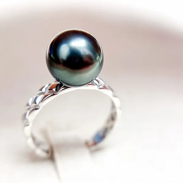 흑진주반지 천연 타히티안 블랙 펄 링 스털링 실버 라이브 입이 둥글다 바다 진주 섬광
