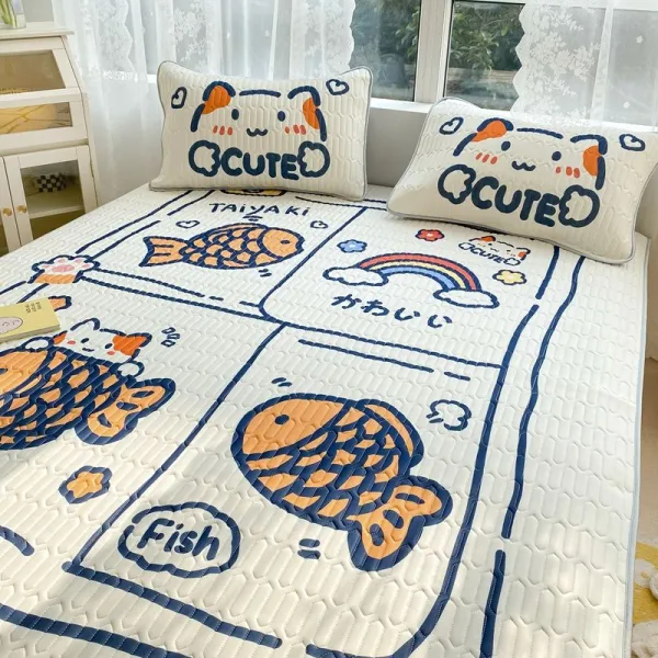 MOHEGIA 여름 매트 3 피스 에어컨 소프트 아이스 실크 매트 기숙사 싱글 접이식, 경계 물고기-CY