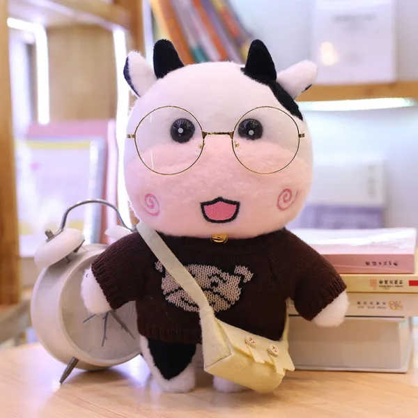 PKTOYS DIY 행운 예쁘다 귀여 봉제 빵빵덕 소 인형 옷 선물 A01, 소 행복 (커피 곰 스웨터)