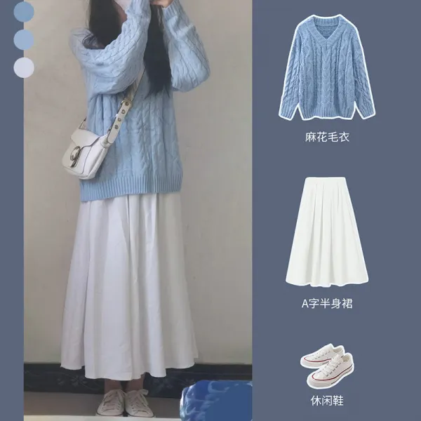 빅사이즈투피스 여성의류 가을 슬림핏 게으르다 나태한 풍조 니트 스웨터 스커트 15 내 출하함 3305780196