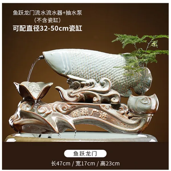어항필터 도자기 자동 유수어 대야 양어장 분수 폭포 조경 장식 수반 순환수 4854240288, XK 물고기가 용문으로 뛰어오르다 (