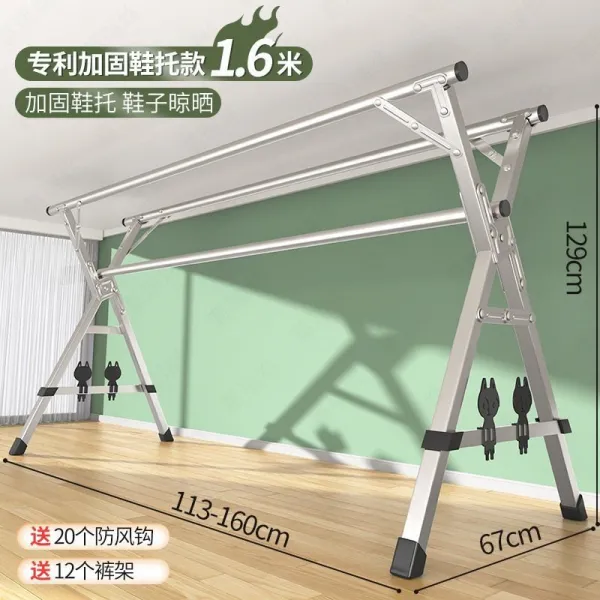 베란다건조대걸이 우뚝 솟다 채색 스텐레스 가정용 착지 접이식 실내 신축 단봉 빨래건조봉 자 4905456874, 포크 형 끈 신발 받침대 빨래건조대