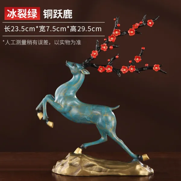홈데코소품 매화 장식품 사슴은 동 복지 응접실이 있다 실내 현관 사무실 술장 퀄리티 이사 기프트 4937455960, 순동 도약사슴을 뛰어오르다 빙열 그린