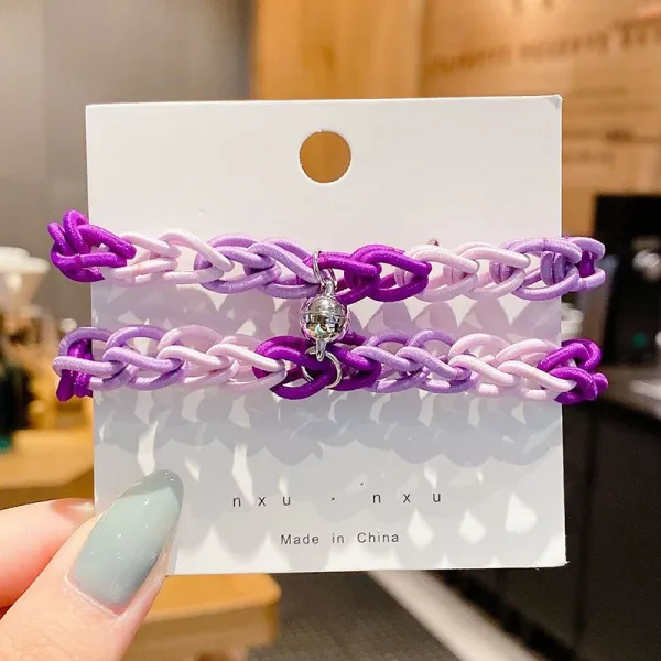 커플체인팔찌 작은 고무줄 위빙 라탄 끈팔찌 서로 들이마시다 개학함 남자 친구 트윈 4249119244, 한쌍 커플 타입, 보라색 커플 팔찌
