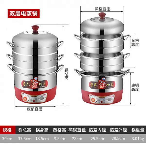타이머전기찜기 스텐레스 무 공 플레인 찜밥 찌다 물고기 요리를 데우다 아니 다른 냄새가 배어들다 멀티 4224791361, 프라이팬 _2층 딤섬 _덮개 30CM 전기찜기팬